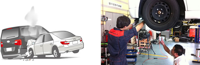 高い板金・塗装技術を身につけた専門スタッフが対応します。自社スタッフ、自社工場だから安心です!!